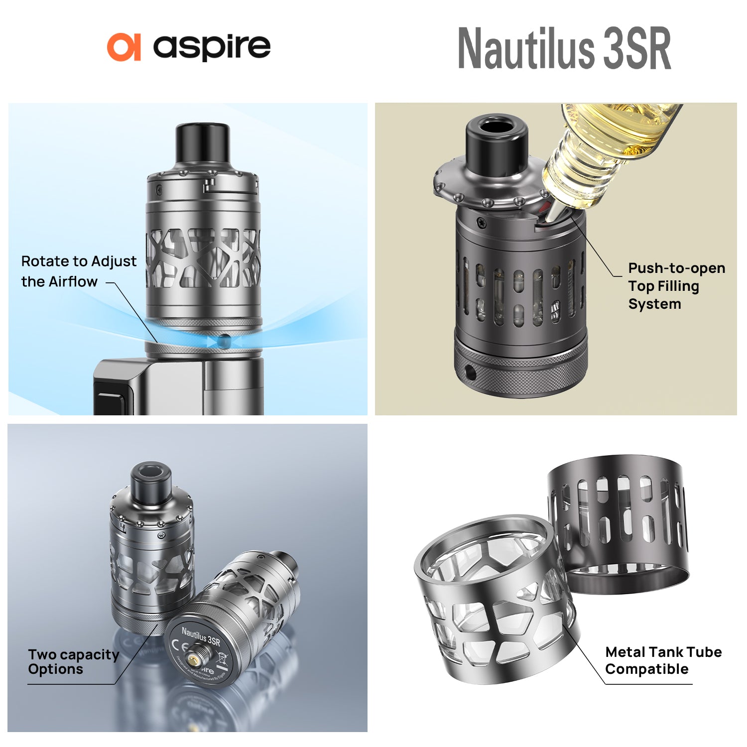 Aspire Nautilus 3SR Vape Tank – Gunmetal, Silver, Black