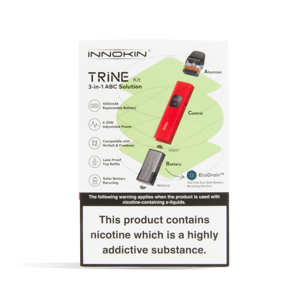 Meet the Innokin Trine Vape Pod Kit, an advanced addition to the world of vaping devices, designed to offer a blend of sustainability, cost-effectiveness, and high performance. The Trine Kit features a unique 3-in-1 ABC integration. Atomizer, a removable and rechargeable Battery, and a Control panel. This system not only ensures top-notch performance but also encourages eco-friendly practices through its innovative EcoDrain™ technology, which allows safe battery discharge before disposal.