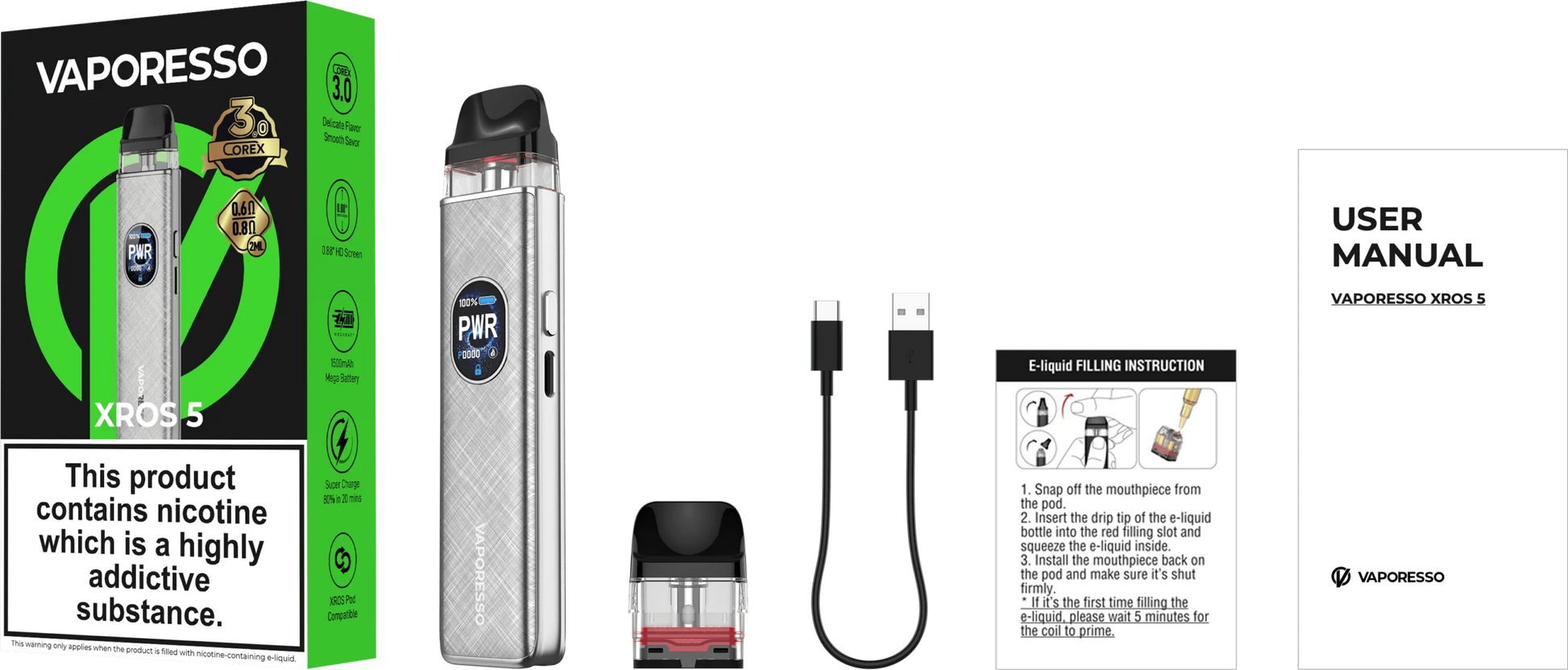 Step up to the Vaporesso XROS 5, a premium pod kit that fuses high-end performance with everyday simplicity. Packed with a 1500mAh battery and 3A USB-C super-charging, it’s built to outlast the day and refill in minutes.