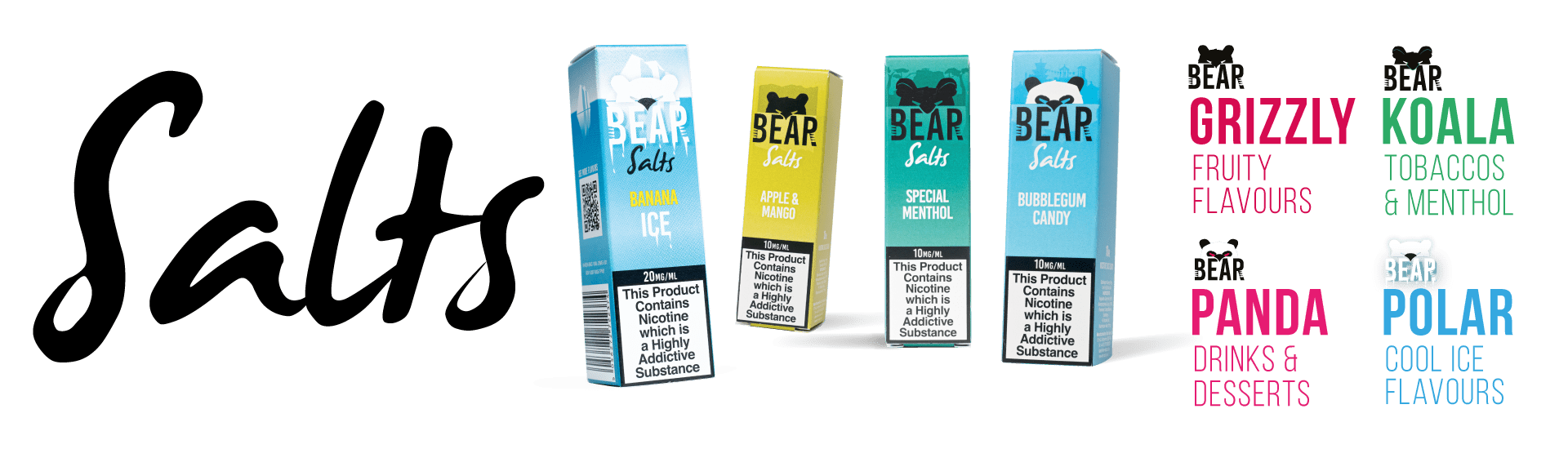 With four unique ranges that cater for every pallet, BEAR Salts will leave your mouth-watering with an icy cool aftertaste across more than 30 new flavours. BEAR witness to the incredible taste of our newest premium ice nic salts and make sure your vape is loaded for BEAR.